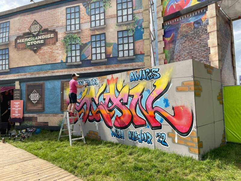 Dit jaar had Wish Outdoor een verrassing in petto voor de festivalgangers. Tussen de indrukwekkende line-up van artiesten en spectaculaire podia, stond de kunst centraal. Graffiti, een kunstvorm die vaak wordt geassocieerd met stedelijke straten, kreeg een nieuw podium op het festivalterrein. Bezoekers werden getrakteerd op een visuele traktatie terwijl een getalenteerde kunstenaar het hele weekend bezig was met het maken van kunstwerken met spuitbussen.