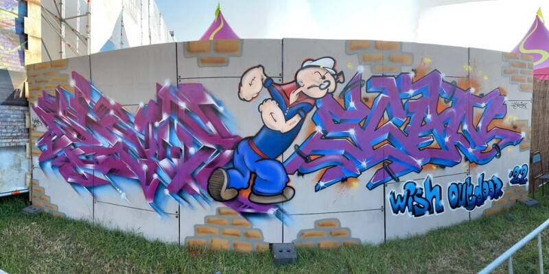 Graffiti-artiest ScanOne ging een spannende samenwerking aan met Wish Outdoor. Het doel was om het festivalterrein te verrijken met kleurige kunstwerken en om festivalgangers een kijkje te geven in de intrigerende wereld van graffiti.